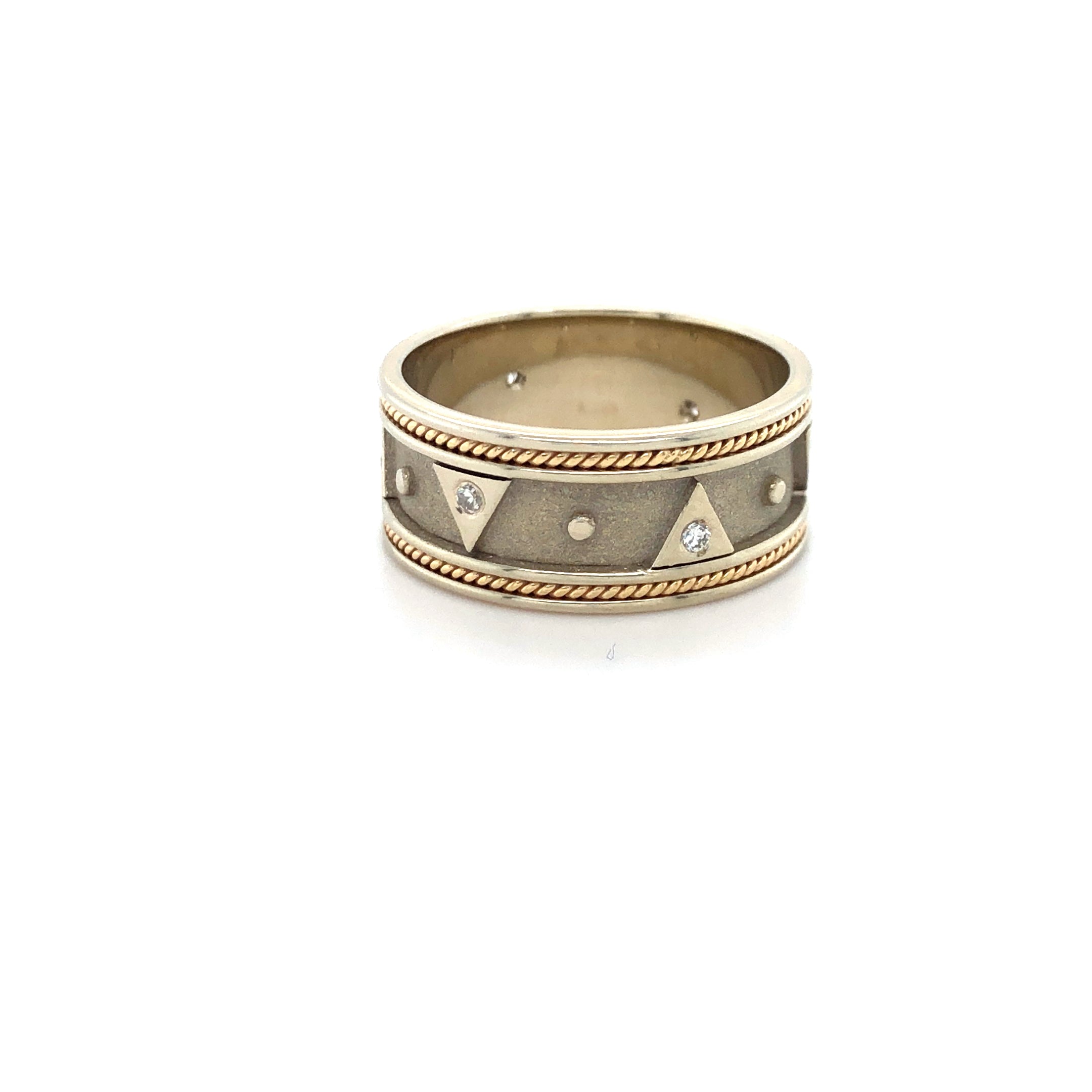 Regular price $2,999.00Sale price $2,999.00 Regular priceUnit price / perMetal: 9K YELLOW GOLD & 9K WHITE GOLD Finger Size: Q Band Width (mm): 8.6 Weight (g): 5.27 Stones: NATURAL DIAMOND