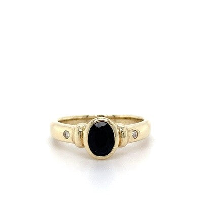 Regular price $1,700.00Sale price $1,700.00 Regular priceUnit price / perCentre Stone Type: Australian Black Sapphire Centre Stone Size (mm): 4.75 x 6.60 Centre Stone Shape: Oval Side Stones: Diamond No of Side Stones: 2 Finger...