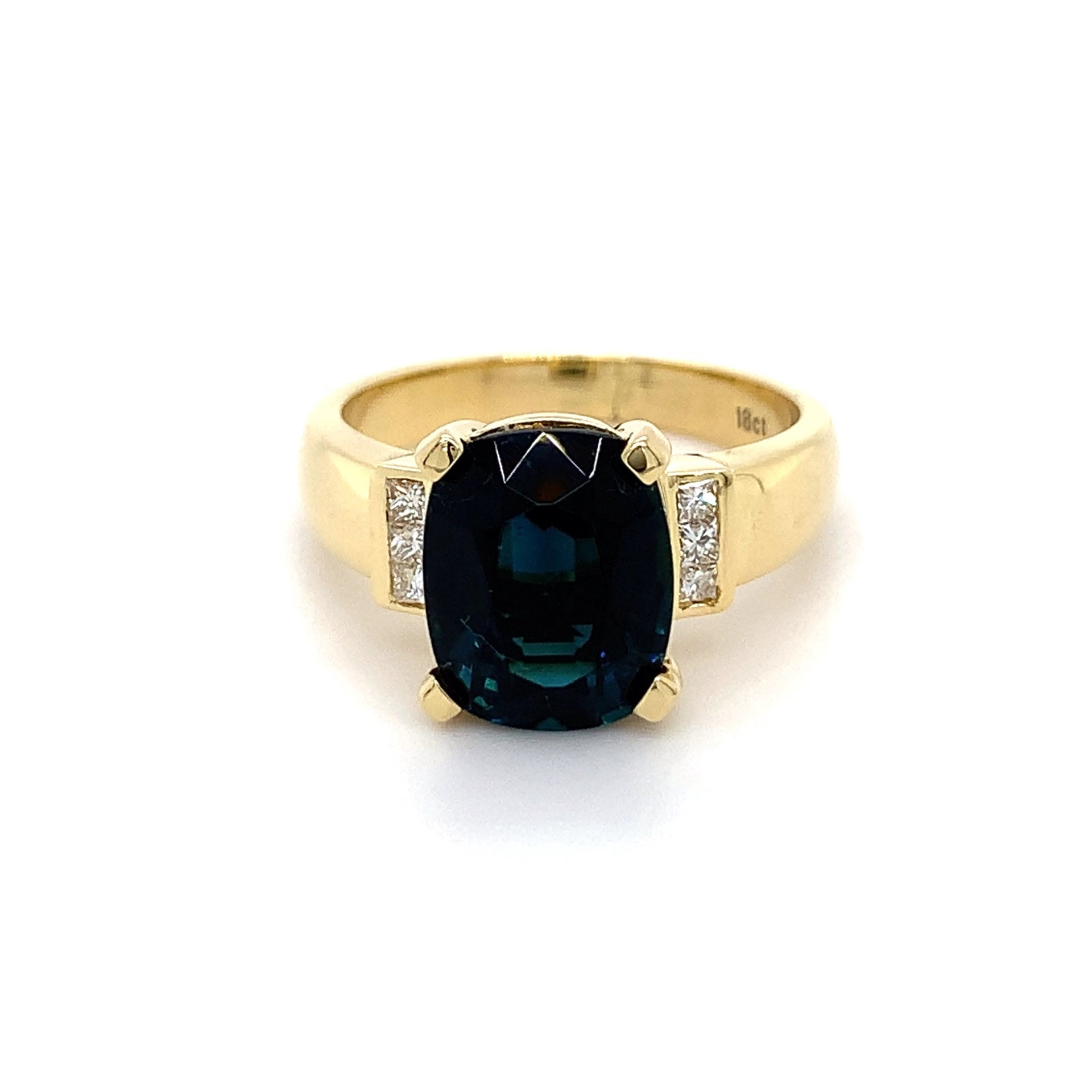 4ct Green Tourmaline + 0.15ct Dia Ring 18kt Yellow Gold