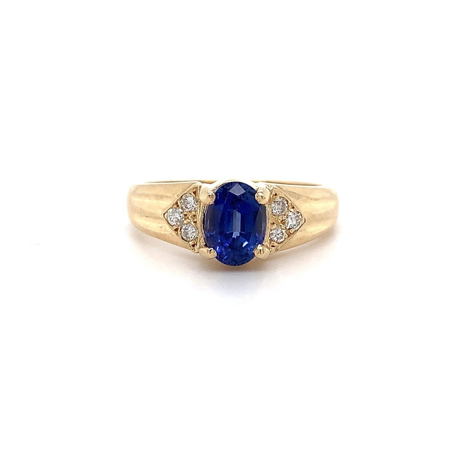 Regular price $1,999.00Sale price $1,999.00 Regular priceUnit price / perCentre Stone Type: Blue Sapphire Centre Stone Size (mm): 5.12 x 7.10 Centre Stone Shape: Oval Side Stones: 9ct Diamond No of Side Stones: 6 Finger...