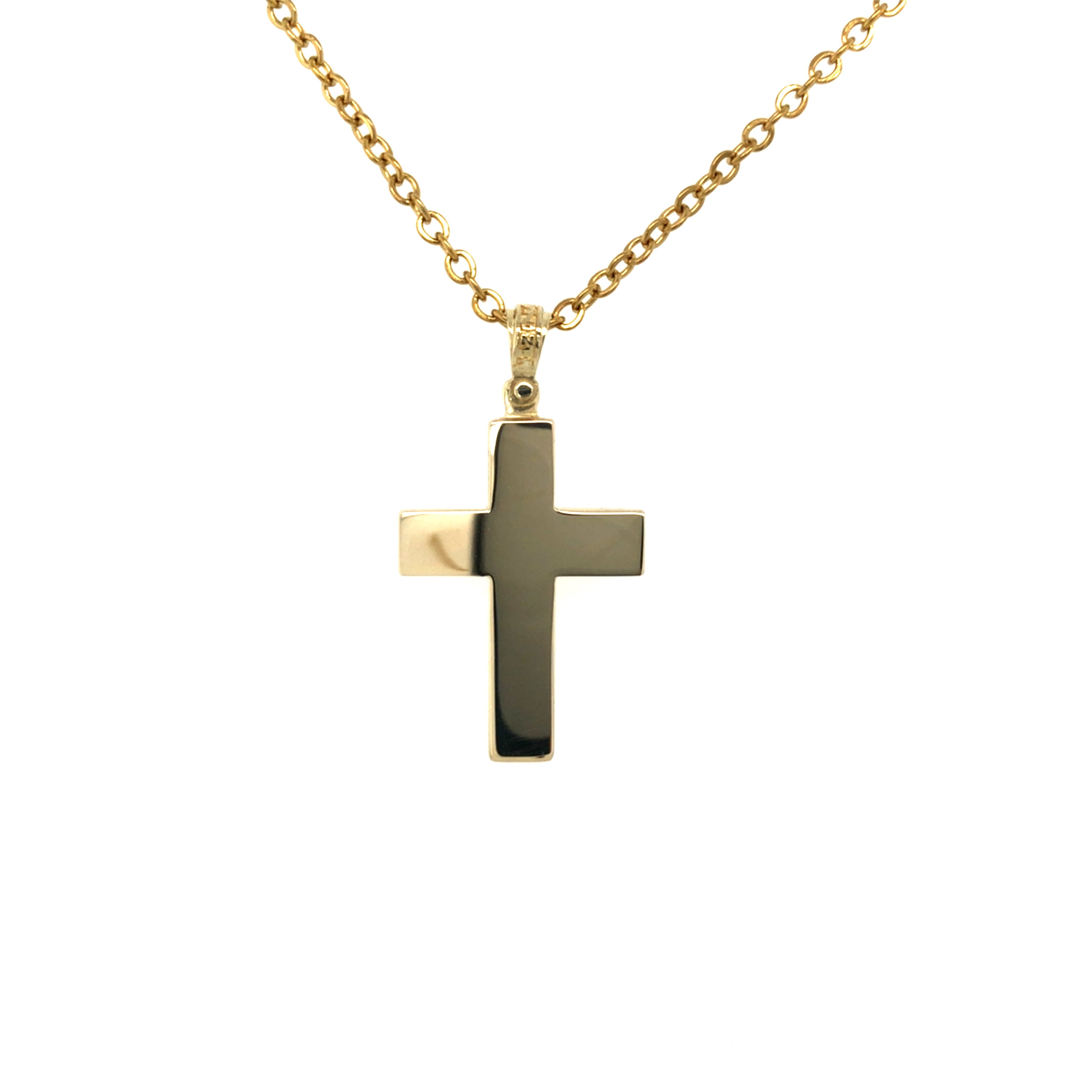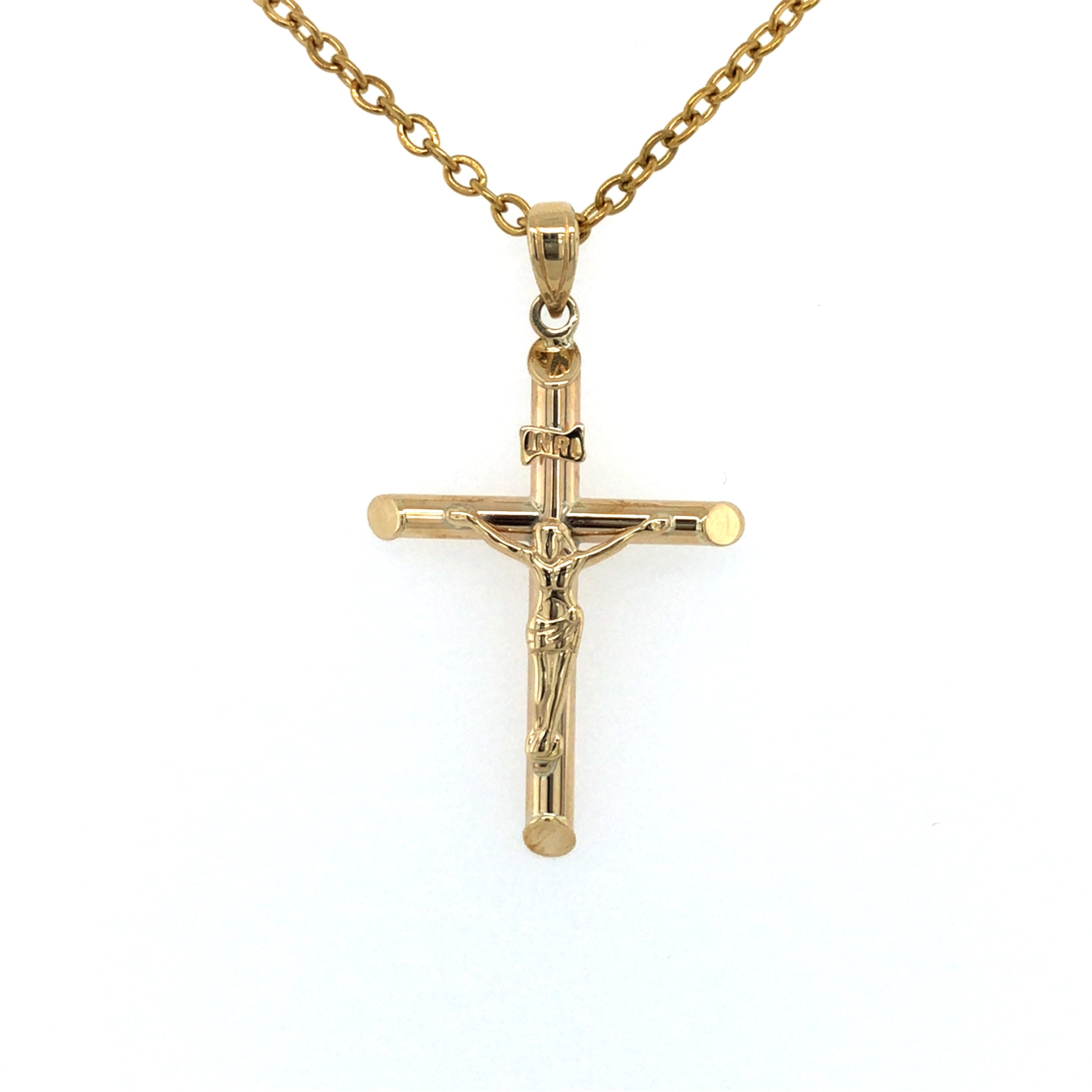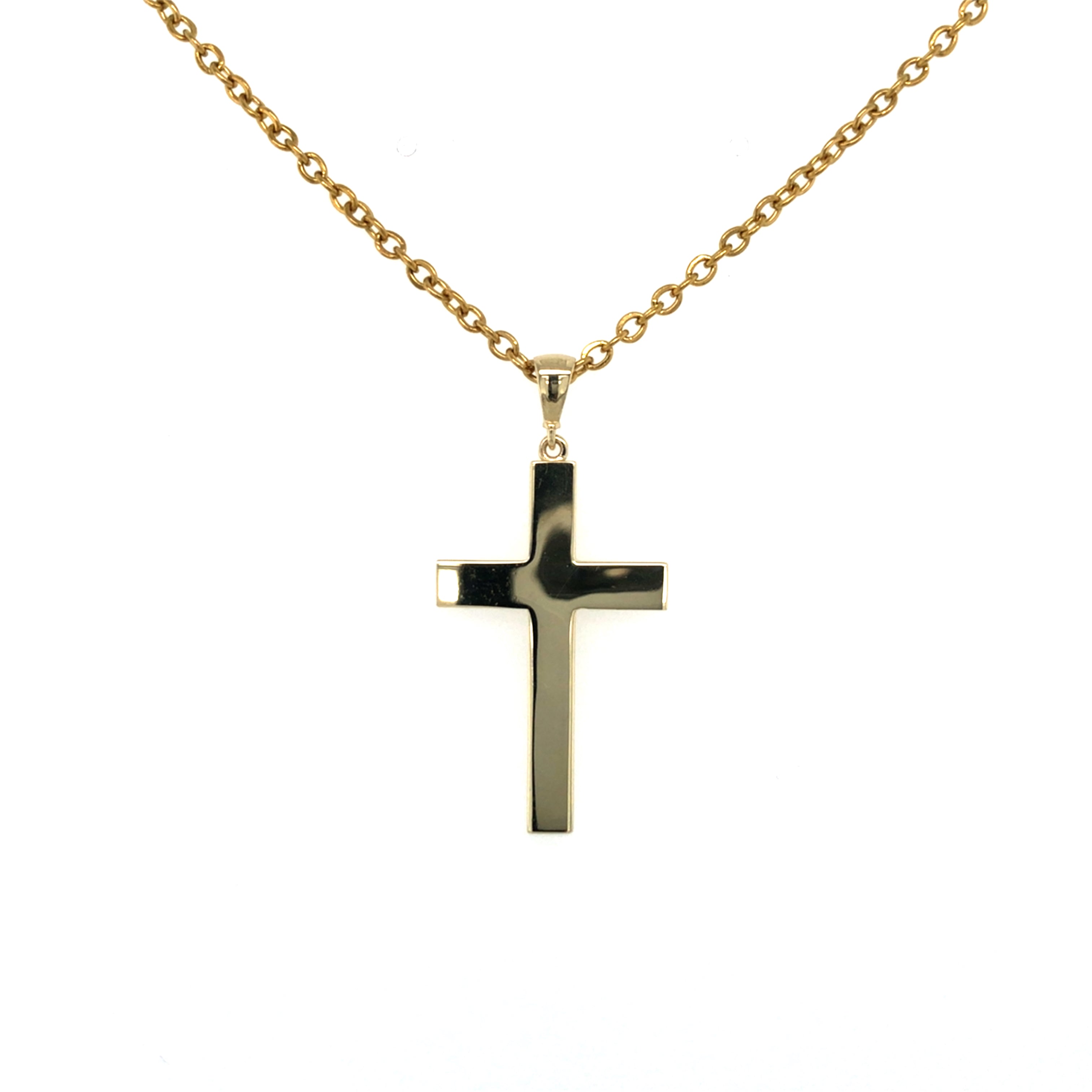 9K YG Half Round Profile 20.5mm Cross Pendant