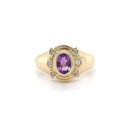 Regular price $1,050.00Sale price $1,050.00 Regular priceUnit price / perCentre Stone Type: Amethyst Centre Stone Size (mm): 6.0 x 4.3 Centre Stone Shape: Oval Side Stones: Diamond No of Side Stones: 6 Finger Size: M...