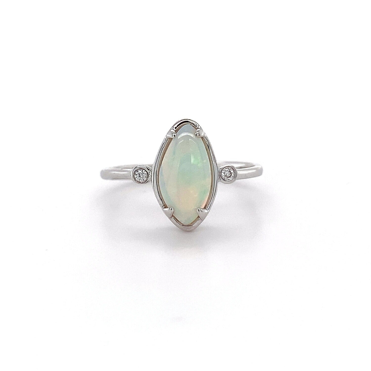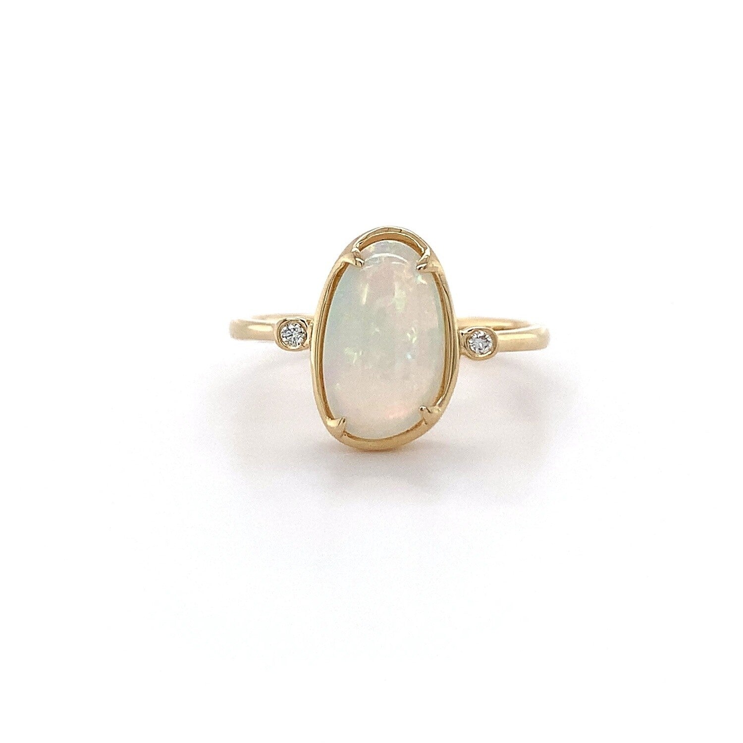 Regular price $1,800.00Sale price $1,800.00 Regular priceUnit price / perCentre Stone Type: Australian Solid Opal Centre Stone Size (ct): 1.10 Side Stones: Diamond No of Side Stones: 2 Total Diamond Weight (ct): 0.021 Finger Size:...