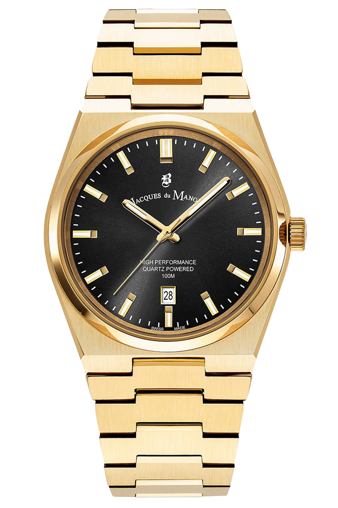 JDM Horizon Gents 41mm 100m Black Dial Gold Stainless Steel Strap Watch