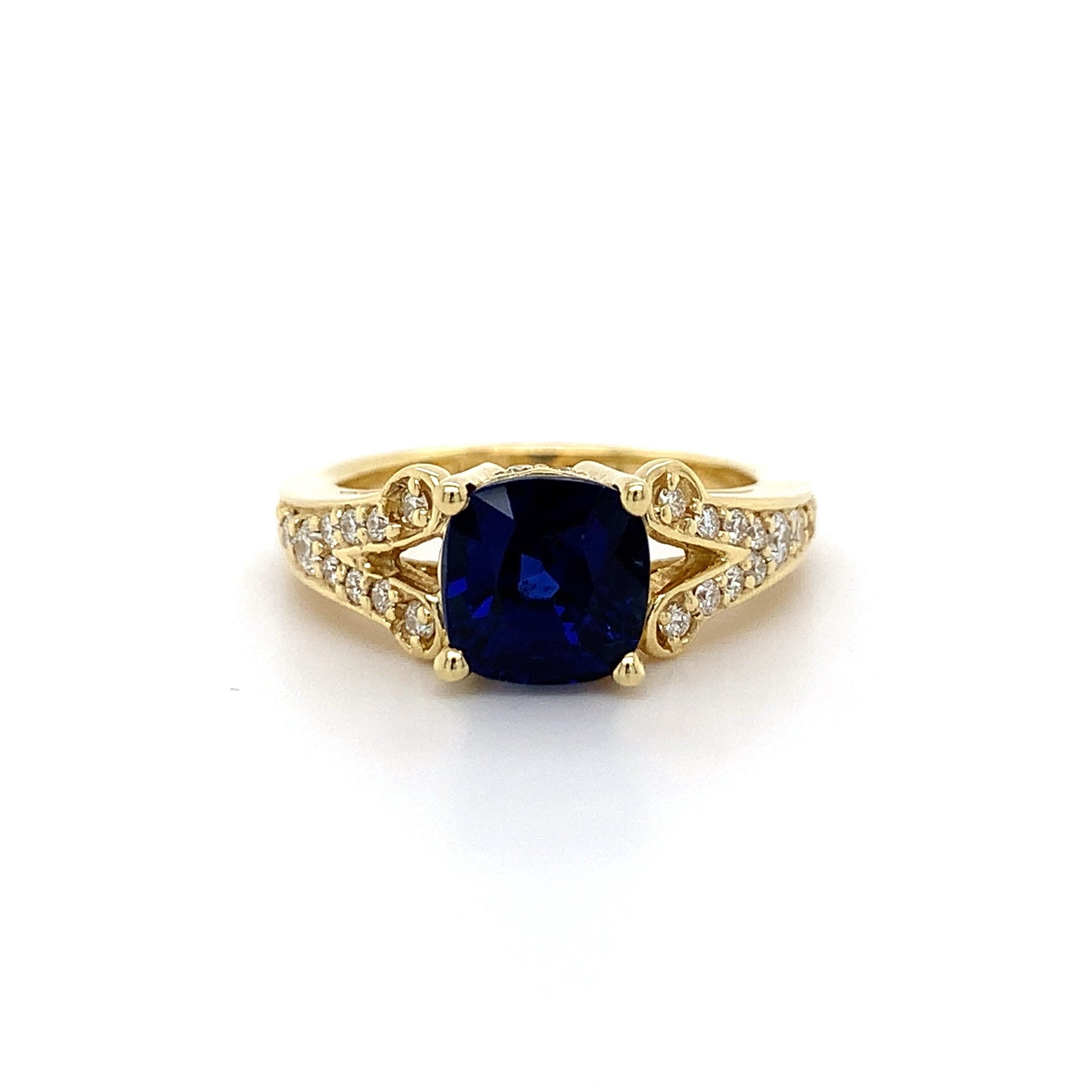 2.5ct Cushion Sapphire + 0.50ct Dia Ring 18kt Yellow Gold