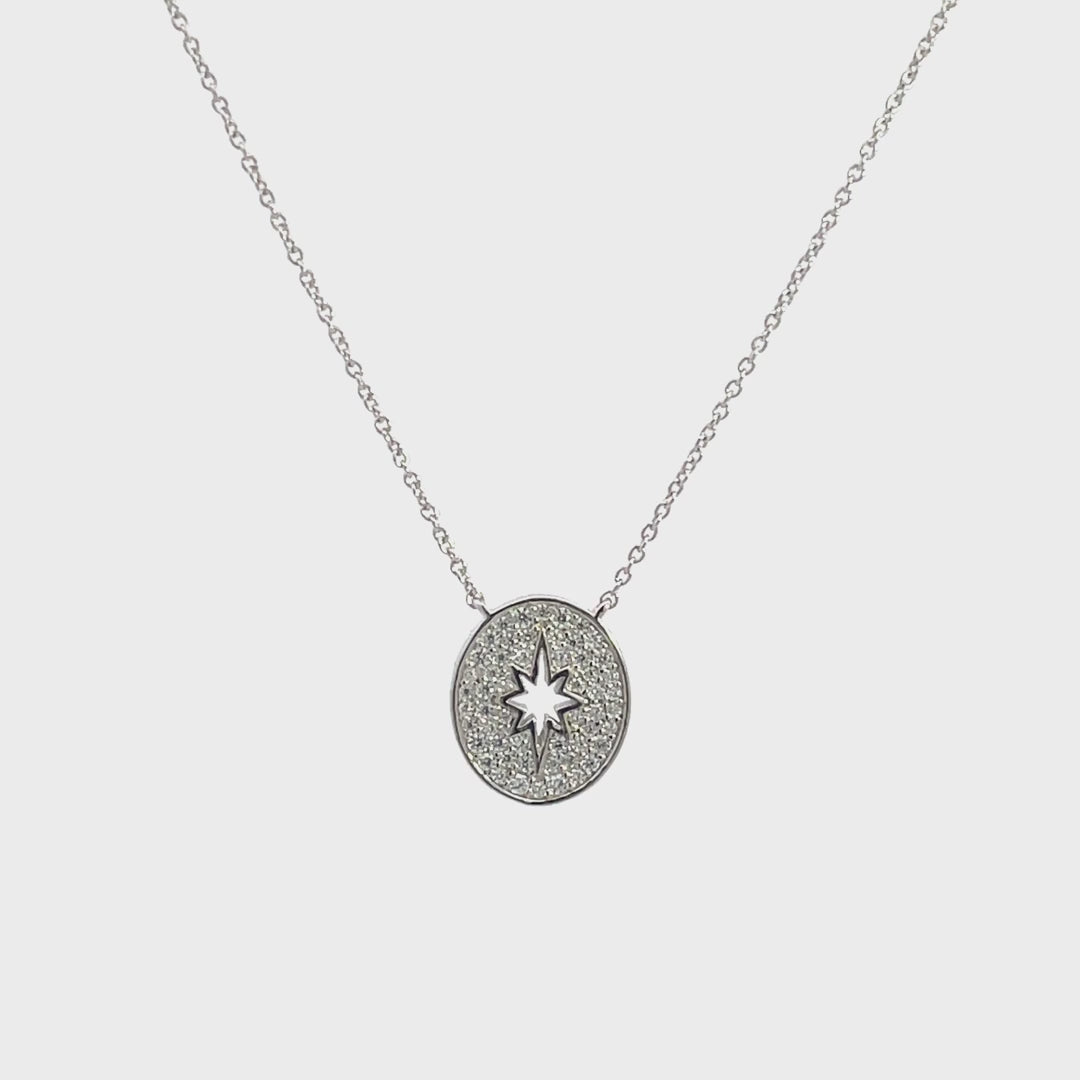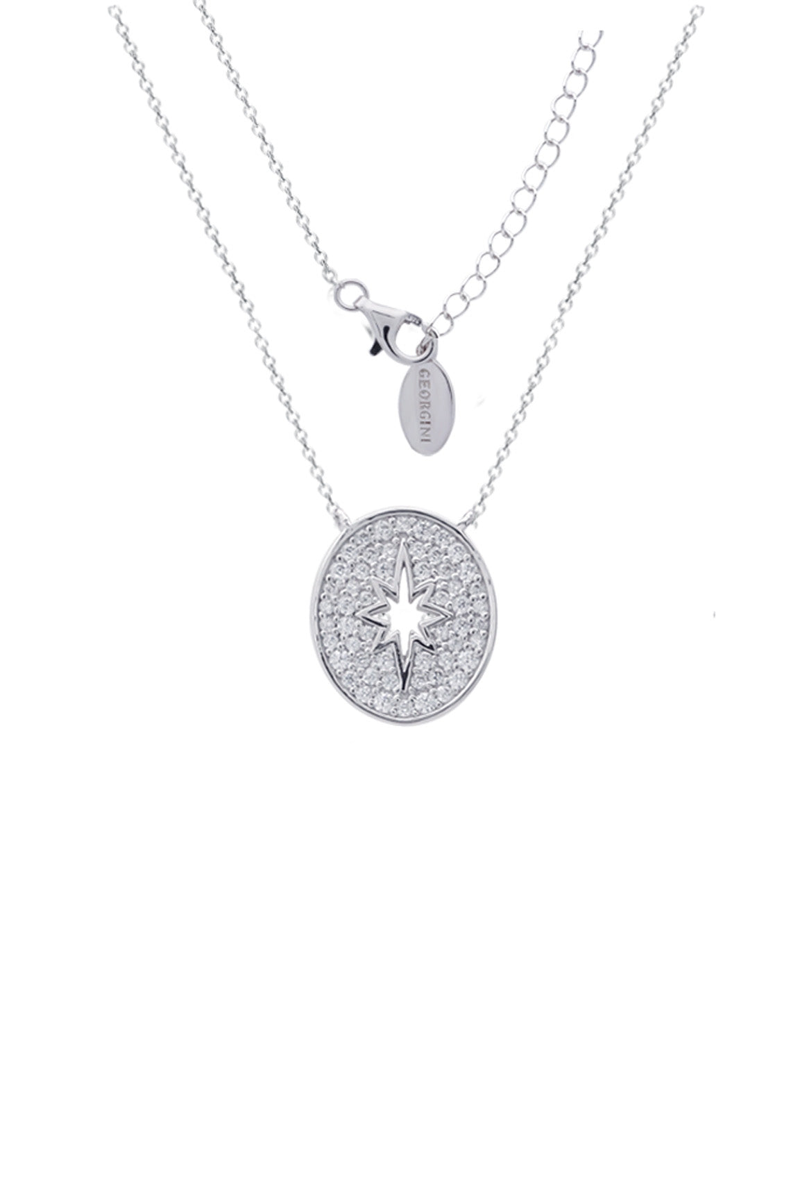 The Follow The Star pendant by Georgini features a stunning open star oval medallion set to sparkle like the night sky.