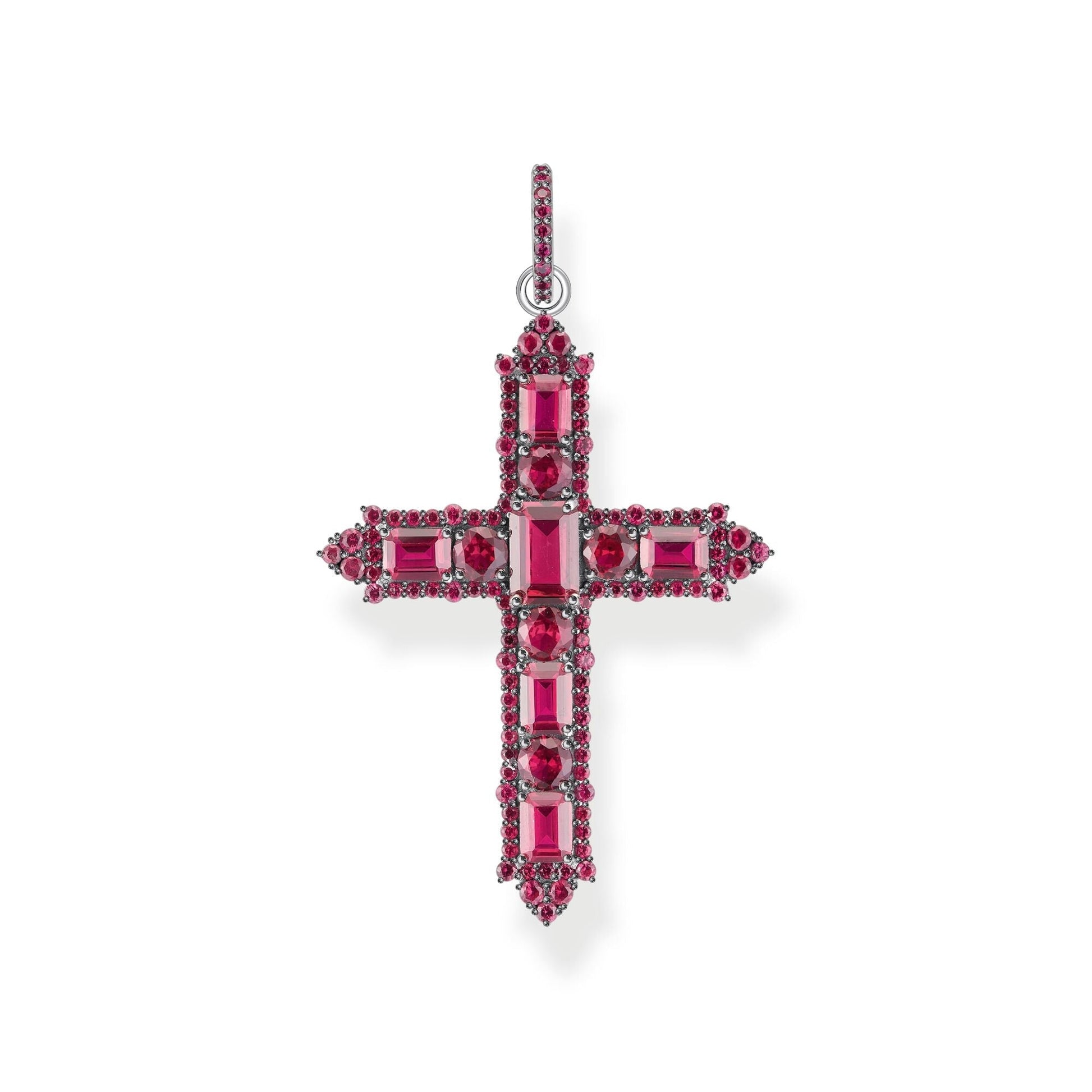 THOMAS SABO Blackened cross pendant with ruby red stones
